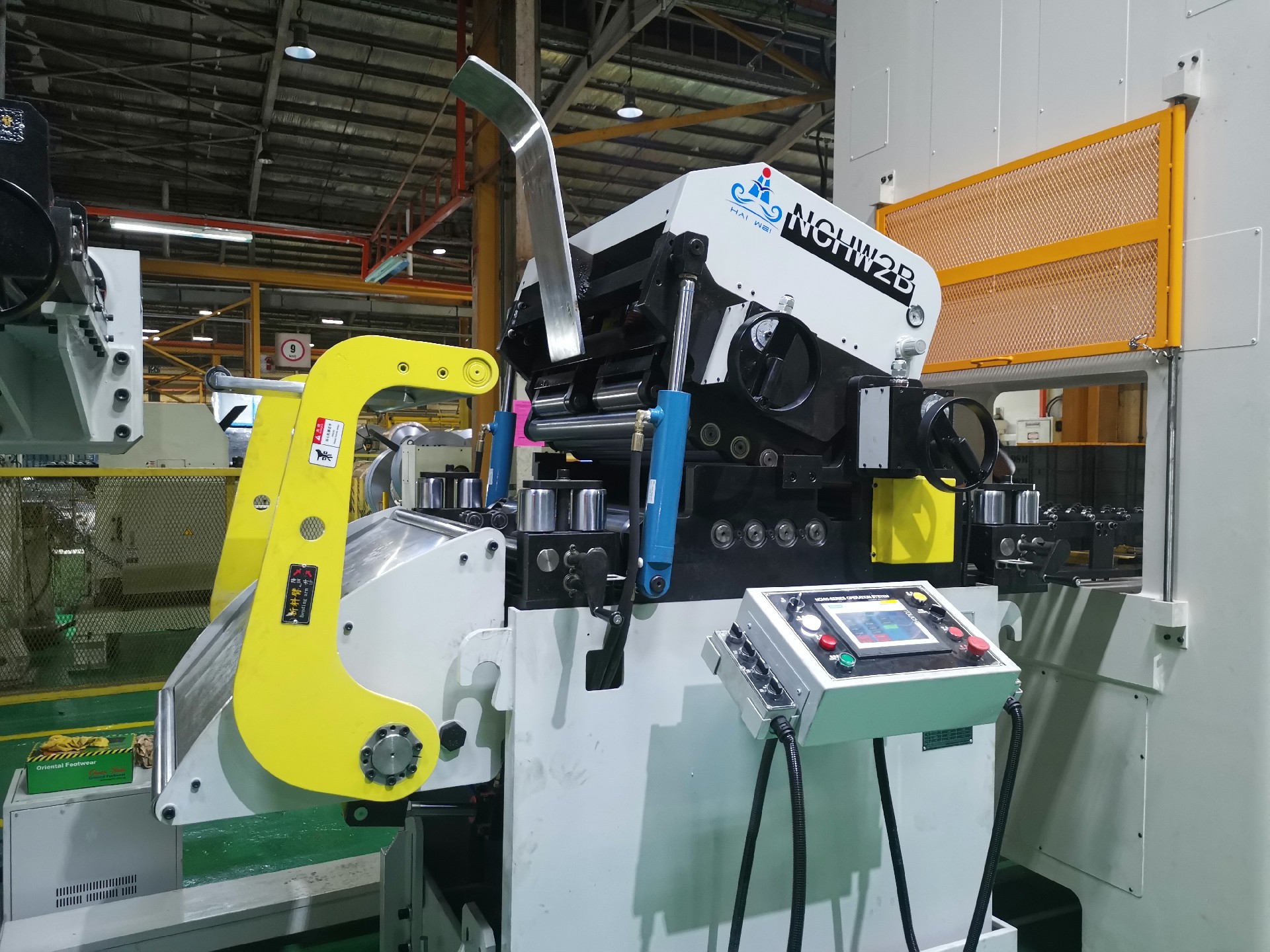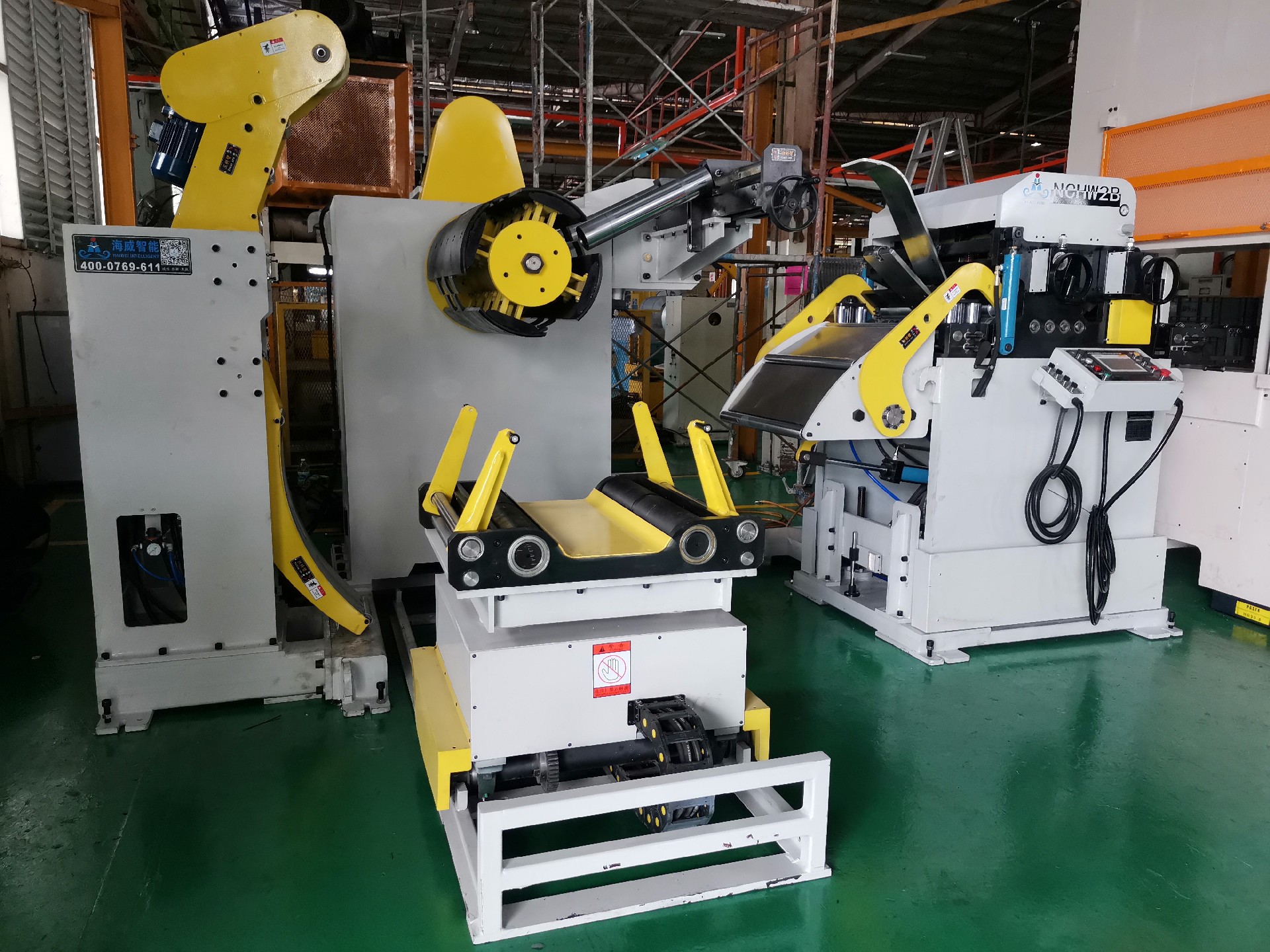 自動化聯動,提升生產效率:集成開卷、整平、送料、校偏、收料等全流程功能,形成一體化生產線,無需額外配置獨立設備,大幅簡化生產流程;支持與衝壓機、機器人、分揀設備聯動控製,實現從板材開卷到成品衝壓的自動化連續作業,送料速度 0-20m/min ,相比傳統人工輔助加工效率提升 40%,適配家電行業大批量生產節奏。